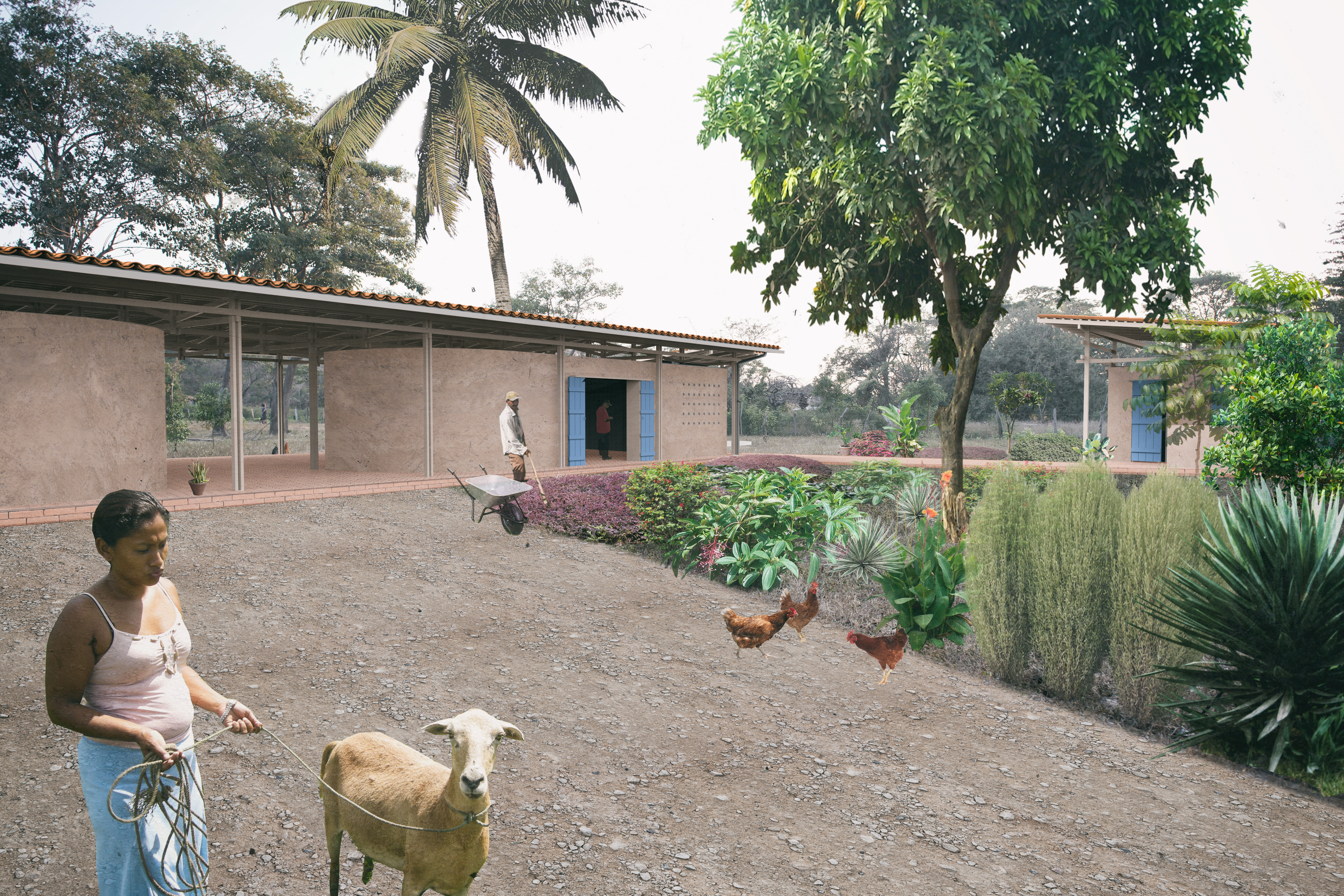 Being used by peasant families in the community of LAS PALOMAS (Nicaragua), the AGRICULTURAL COMMUNITY CENTER has the goal to secure sales of regional agricultural goods, share processing and production facilities and generate sustainable development through different educational programs. As participation is the key to reaching those goals, the community members have evaluated their needs and were involved in the design process. Furthermore, they will execute the construction themselves – under supervision of a group of local women, specialized in building with on-site earth. The beginning of construction is planned for autumn 2019.